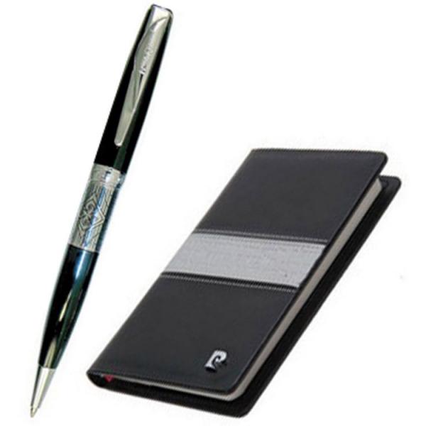 Набор: ручка шариковая, записная книжка. Pierre Cardin, черный/серый, цвет черный/серебристый/серый/белый