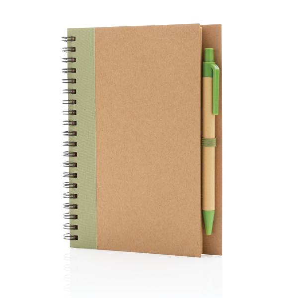 Блокнот на спирали Kraft с ручкой, цвет зеленый