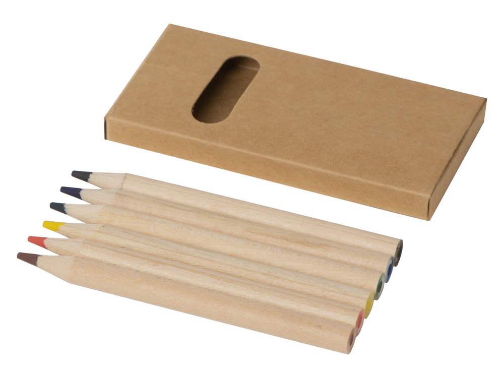 Набор из 6 цветных карандашей из натурального дерева. На картонную коробку и карандаши можно нанести логотип.